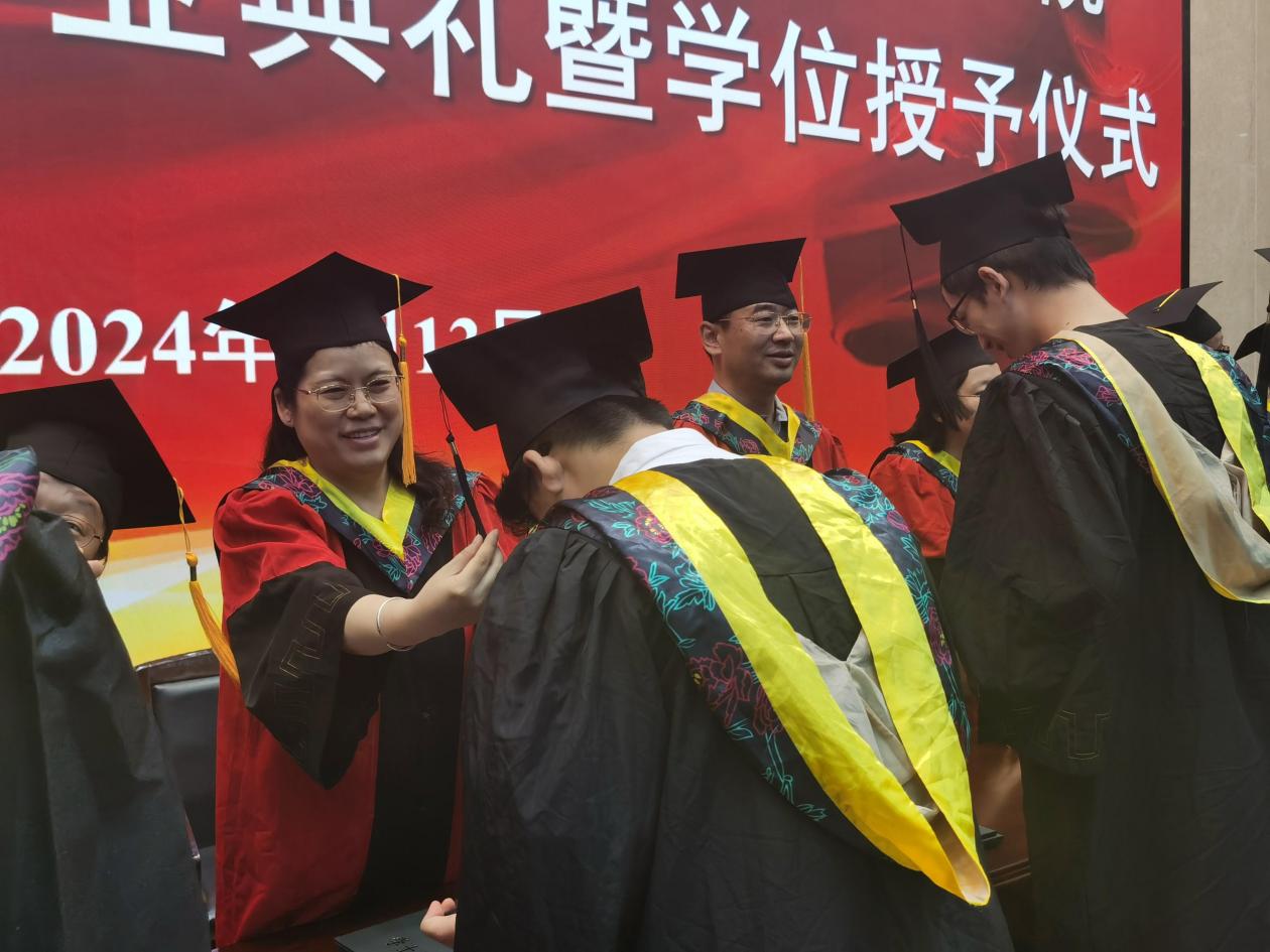 随后赵琰主持学士学位授予仪式。到场的各专业导师为本科毕业生拨穗、颁发毕业证书、学位证书。