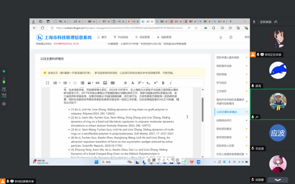 8月28日晚,第三场启明星申报辅导讲座召开,国家级优青杨阳老师出席并指导,新葡萄8883官网amg官网青年教师参加了会议。会议采用线上的形式,新葡萄8883官网amg官网副院长薛亮主持。会上,申报老师首先汇报了自己的答辩PPT,杨老师从内容结构、视觉呈现和演讲技巧等方面进行了全面的指导。他强调了答辩PPT的清晰度、针对性以及对答辩时间的精准把控,指导申报老师如何有效地展示项目的研究亮点和创新成果。此外,杨老师还就如何准备答辩环节提供了实用的建议,帮助老师们在答辩中更好地展示自己的项目。通过杨老师的指导,申报老师对如何优化答辩PPT有了更清晰的认识,对提升项目答辩的质量和竞争力充满了信心。
