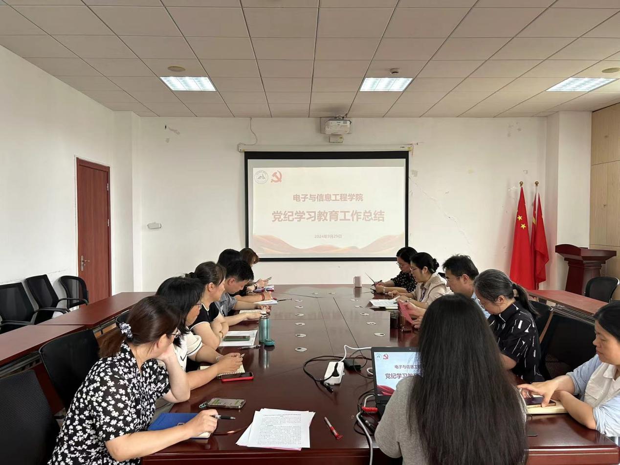 会议强调,要坚持不懈抓好党的创新理论武装,完善第一议题制度,落实好党委理论中心组学习和党支部集体学习等日常学习制度,学懂弄通做实习近平新时代中国特色社会主义思想,贯通学习领会习近平总书记关于全面加强党的纪律建设重要论述的精髓要义和实践要求,做到信仰常青、理论常学、党性常炼。要巩固党纪学习教育成果,重视、用好党纪学习教育的经验启示,注重党纪学习教育推进与学院中心工作相结合,持续深化党建与业务工作的双融双促,切实做到把党纪学习教育成果持续转化为推动高质量发展的强大动力。要把深化党纪学习教育与深入学习贯彻落实党的二十届三中全会精神、全国教育大会精神、十二届市委五次全会精神、学校第五次党代会精神相结合,将纪律规矩转化为政治自觉、思想自觉、行动自觉,凝心聚力、奋发进取,全力推动学院改革发展不断取得新成效。