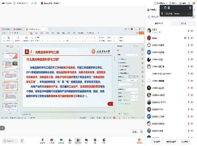(2)12月26日,腾讯会议,针对大二、大三学生进行专业宣讲,内容是光电信息科学与工程专业培养方案、专业介绍和就业考研介绍。