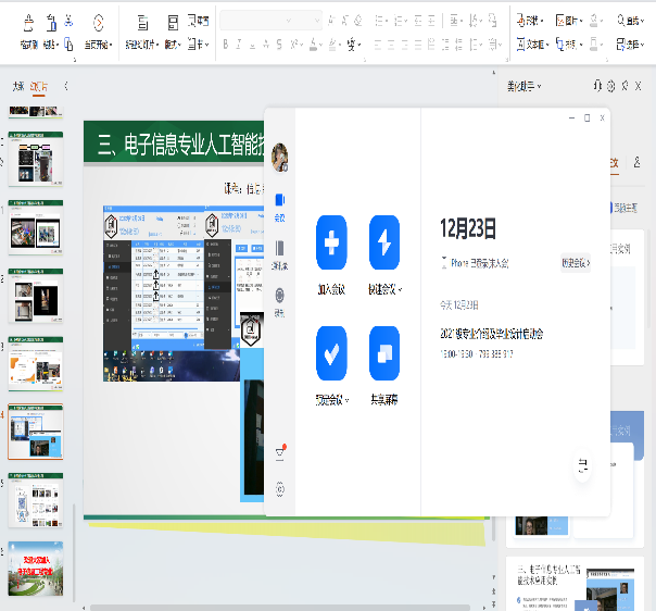 (4)12月23日,腾讯会议,针对大四学生进行专业宣讲,内容是电子信息专业前景介绍及毕业设计要求。